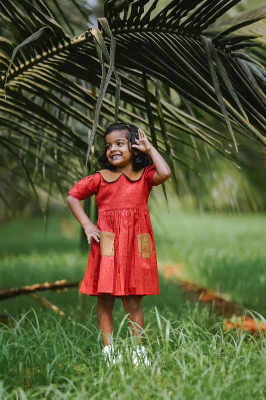 Charming Childhood Delight: The Maroon Peter Pan Collar Frock