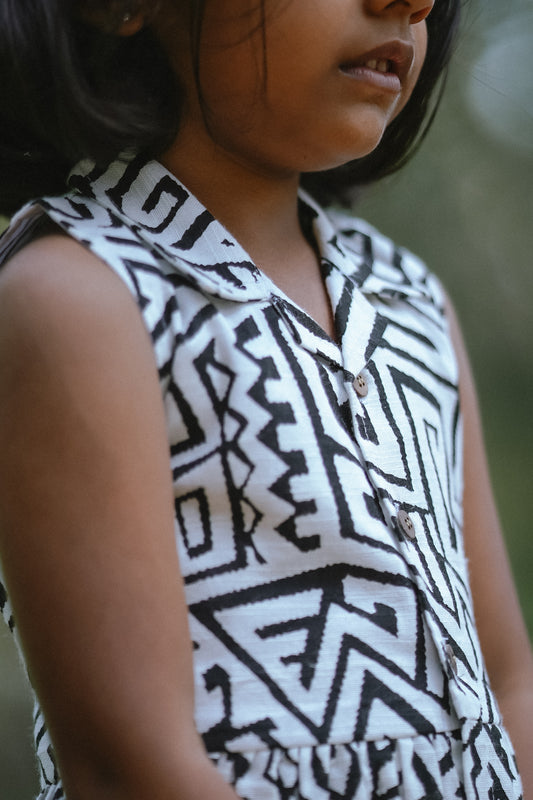 Whimsical Geo-Print Frock: A Playful Ensemble