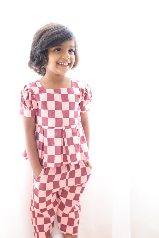 Pink Checks Co Ords 3/4 Pant