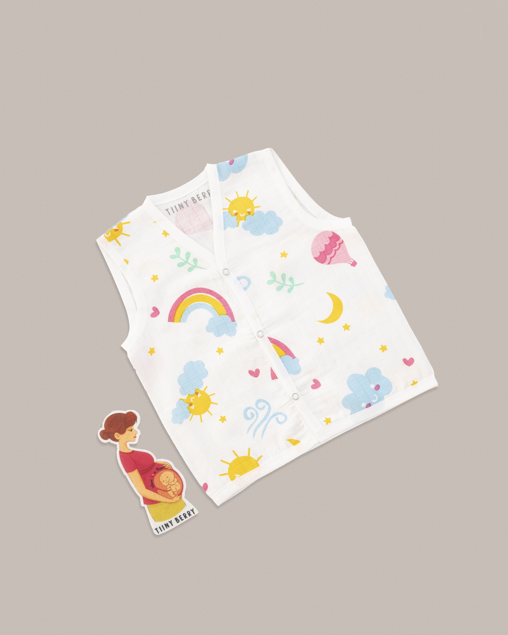 Woven from the finest, 100% organic cotton muslin, luxuriously soft and breathable for ultimate comfort. Label-free and saliva-tested, perfect for even the most sensitive babies.
